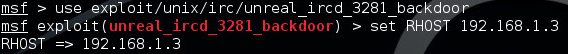 Step 1: As seen in figure 9 below, the “use” command will load the exploitation module and the “set” command will target the remote host for the exploit.